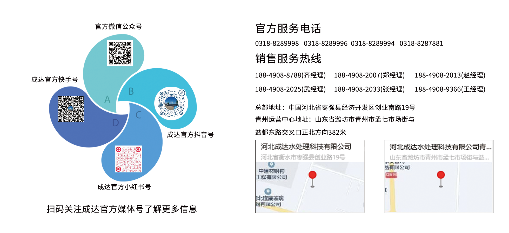 河北成达水处理科技有限公司总部地址:河北枣强县创业南路19号 客服电话(TEL):+86-318-8287881